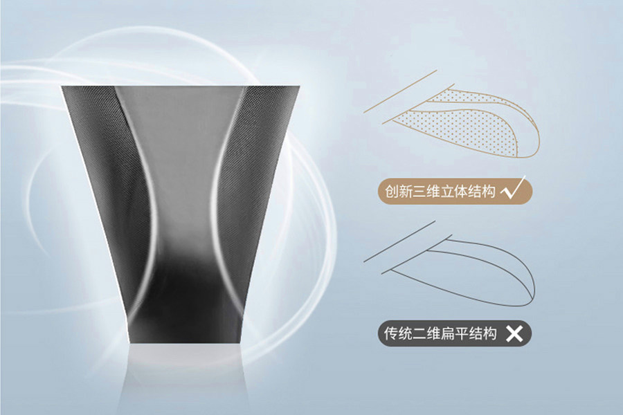 风洞舱内裤打破传统的裆部二维设计,采用三片式立体结构,使其形成自然的3D空间,即时贴合,达到不紧绷不落空的效果。内裤前裆两侧使用蚕丝蛋白网布,10000+氧气孔形成自然的透气空间,穿上的每一刻都能自由呼吸。独特的石墨烯内裆源于优质的航天材料,有序排列的蜂巢结构能够在瞬间向外排湿,让潮湿水汽与汗液远离身体。