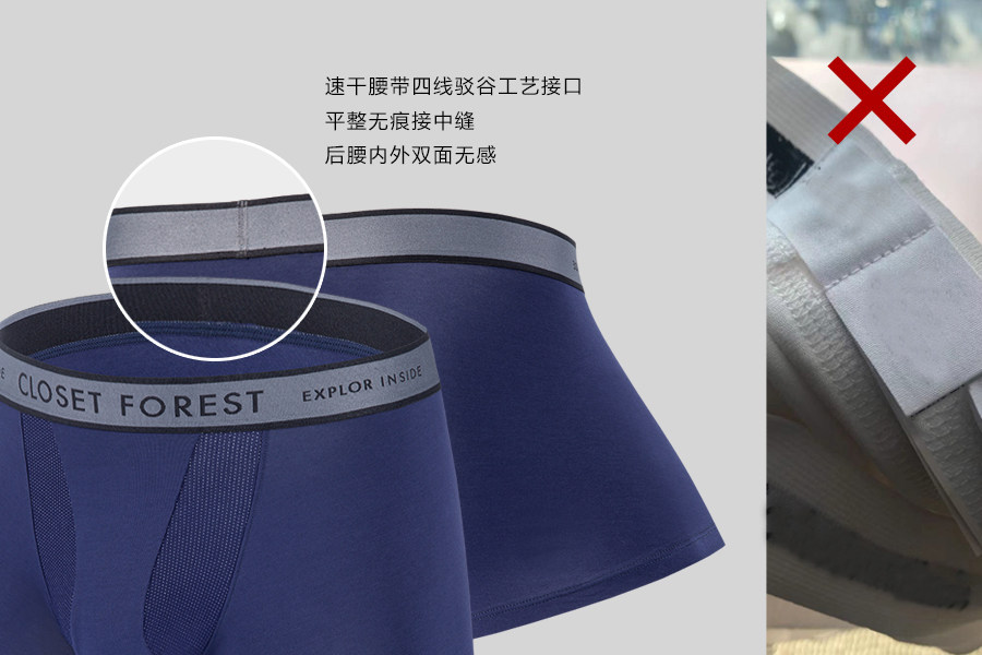 为真正达到无感穿着体验,内裤前裆避开敏感位置缝合,线条圆润不凸起。腰带采用专业运动级材料,滴水瞬吸不黏稠,中缝接口使用复杂的四线驳谷工艺,平整不磨人。得益于创新的设计,这款内裤还获得了国家专利认证。