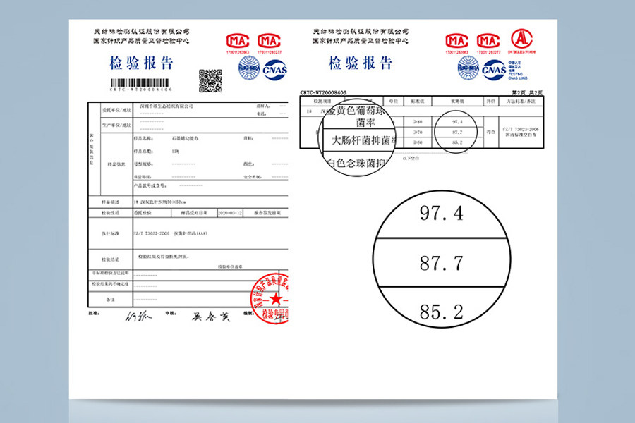 经过权威机构检测,证明内裆有效抑菌率高达97.4%,贴身穿着也能及时呵护身体健康,使你远离病菌侵扰。