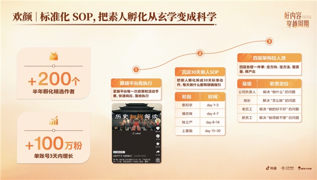 其次是建立标准化SOP,把新人孵化变成一套可执行、可优化的标准流程,新人的成长周期就变得可预期,机构规模扩张也不再是风险放大,而是能力复制。